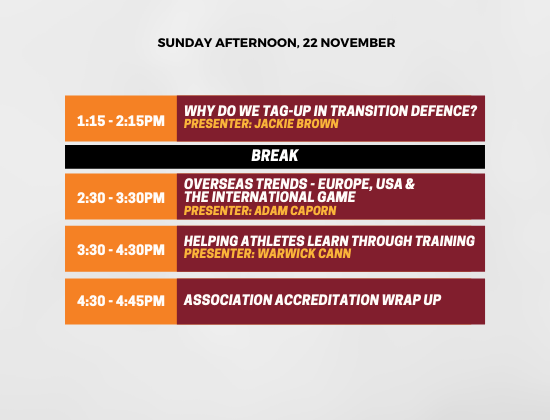 Coaches wishing to obtain their Association Accreditation must attend and complete all sessions and register into the Full Association Accreditation course (link below).